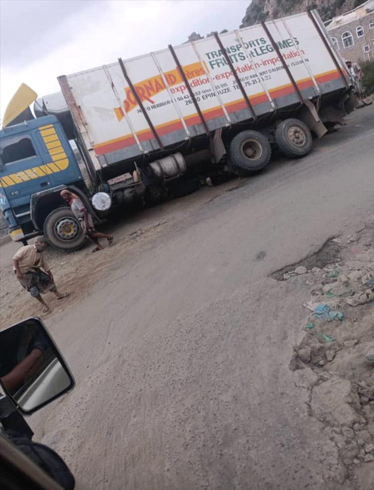 هذه الصورة كمثال بسيط عما تشهده طريق عدن- الخزجة حيفان تعز ...والذي يعد واحد من أهم الخطوط الرابطة حاليا بين مدينة وميناء عدن ومحافظة تعز ولايقل خطرا عن غيره كطريق هيجة العبد وطريق القبيطة ...فهو طريق جبلي وعر ومعرض للسيول بشكل دائم و لا يتحمل حركة الازدحام ومرور القواطر الكبيرة ،لولا الضرورة .