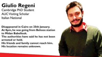 وفقد طالب الدكتوراه ريجيني في القاهرة في 25 يناير/ كانون الثاني الماضي، ووجدت جثته المشوهة في 3 فبراير/ شباط.