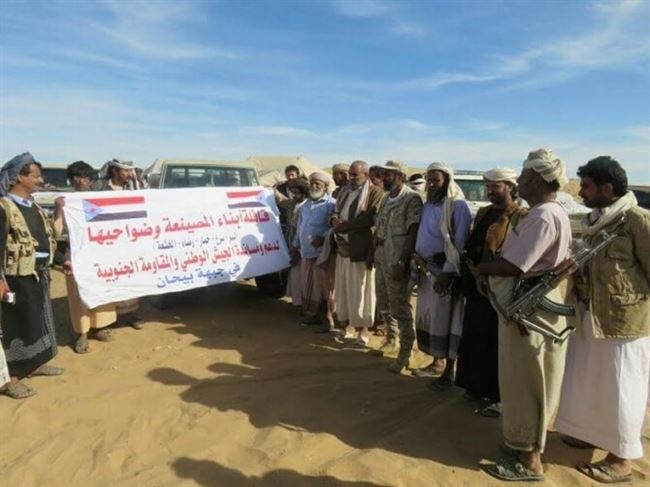 وثمن، أبناء منطقة "المصينعة"، المواقف البطولية لقوات الجيش الوطني والمقاومة وأبناء مديريات بيحان وعين وعسيلان، في مواجهة جحافل المليشيات الانقلابية.. مشيرين إلى أن تعمد المليشيات في إزهاق أرواح الأبرياء والنساء والأطفال يزيد قبائل شبوة إصراراً وعزيمةً في مواجهة المليشيات الإنقلابية التي إنتهكت الأعراف والمواثيق الدولية والإنسانية.