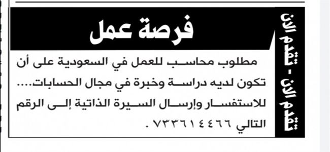 فرصة عمل في السعودية