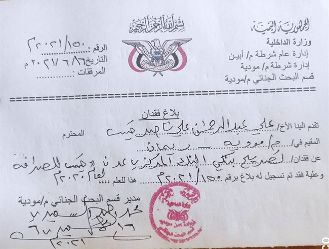 فعلى من يجده تسليمه إلى أقرب مركز شرطة أو الإتصال على الرقم التالي: