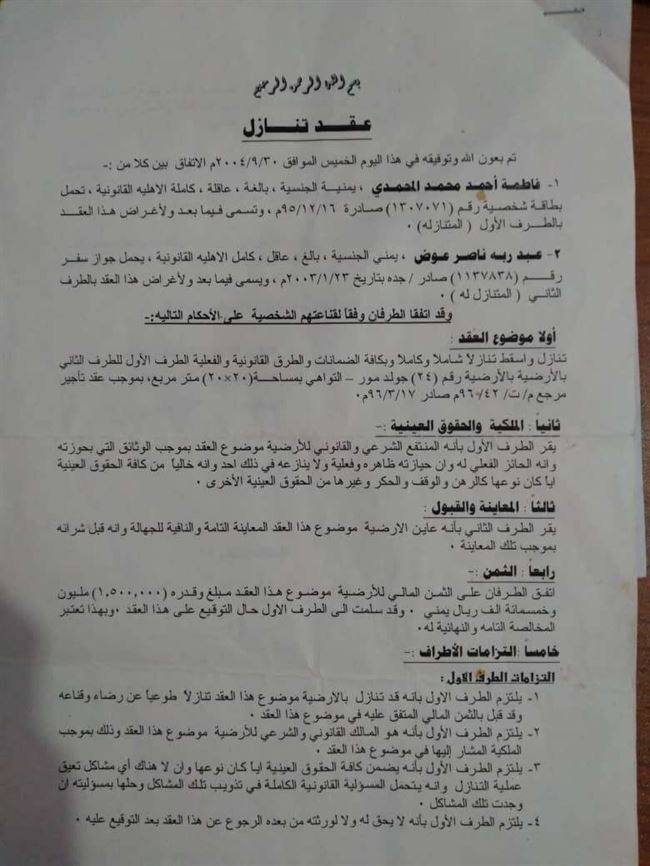 يعلن المواطن عبدربه ناصر عوض عن فقدان توكيل عام ممنوح له من قبل الأخت/فاطمة أحمد محمد المحمدي يخص أرض رقم(24 ) في شعب البساتين بمديرية التواهي.فعلى من يجده تسليمة إلى أقرب مركز شرطة أو الأتصال على الأرقام التالية:738711671738597246
