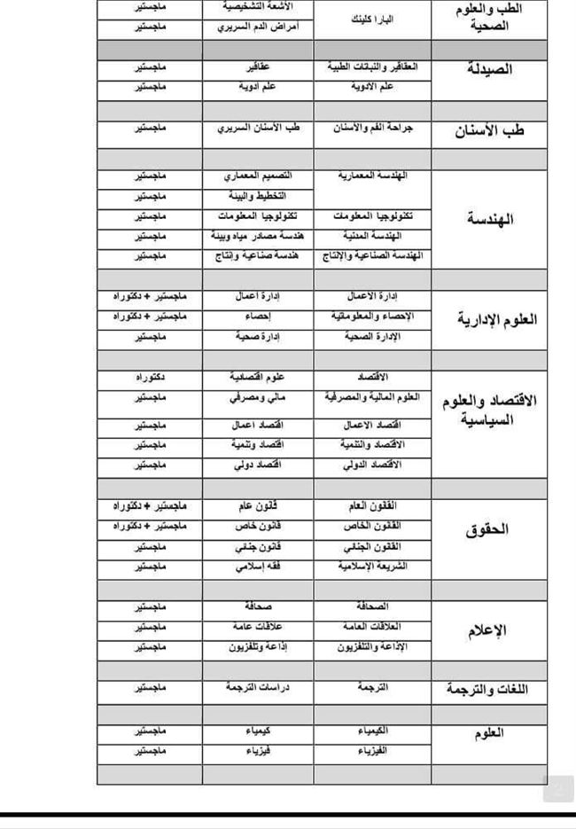 اللعة العريية وآدابها تخصص دراسات أدبية + دراسات لغوية (ماجستير+ دكتوراة)