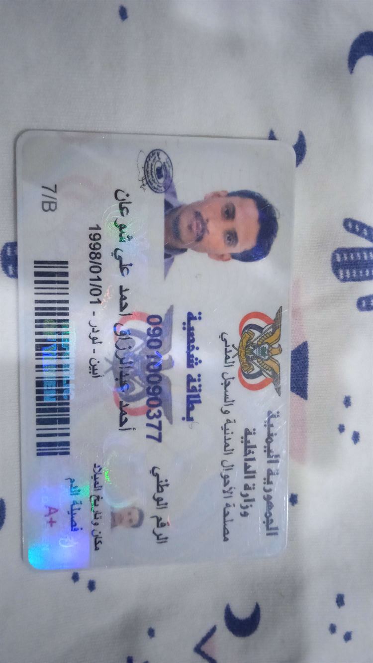 بعلن المواطن أحمد عبد الرزاق أحمد علي شوعان عن فقدان بطاقة شخصية صادر من لودر أبين برقم 09010090377 .
