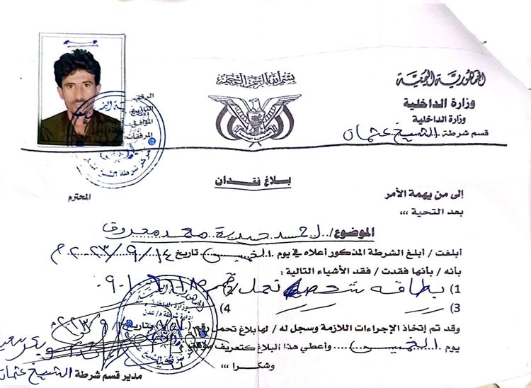 فعلى من يجدها تسليمها لاقرب مركز شرطة او الإتصال على الرقم التالي :777565907