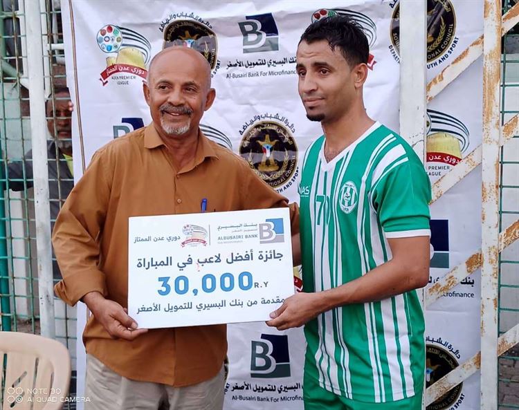 أحرز جائزة أفضل لاعب في المباراة مهاجم الوحدة (عقيل العطاس) وسلمها له نجم الوحدة السابق (احمد سعيد عبده) والجائزة مقدمة من بنك البسيري للتمويل الأصغر .