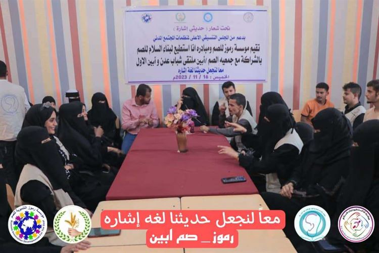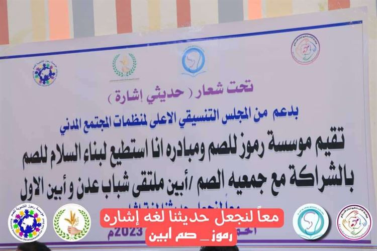 بدعم من المجلس التنسيقي الأعلى لمنظمات المجتمع المدني قام شباب رموز ومبادره أنا استطيع لبناء السلام للصم بزياره تعارفيه وتبادل معارف مع شباب جمعيه الصم ابين وزيارة مدرسة الأمل للأطفال الصم، حيث أثمرت هذه الزيارة عن استعراض قدرات وامكانيات الشباب الصم من عدن وأبين، وكان لقاء حافل بالأنشطة الذي قدمها تلاميذ مدرسة الأمل من الصم، وكذلك الكلمه الترحيبية الذي قدمها رئيس جمعية الصم ابين الأستاذ/ محمد عبدالله اليافعي، الذي عبر عن مدى سعادته بهذه الزيارة، وكذلك أمين عام الجمعيه الأستاذ/ سامح الذي عبر عن أهمية هذه الزيارات التبادليه، حيث تخلق نوع من الانسجام بين الشباب وتبادل الخبره.