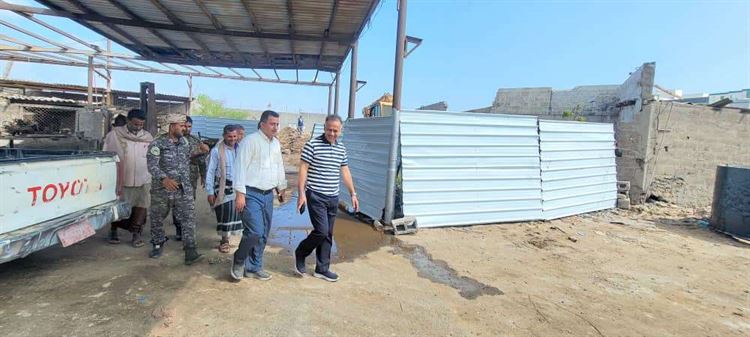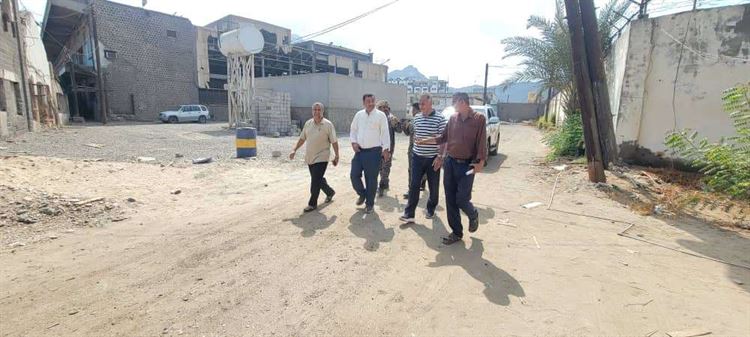 واطلع الجاوي والوليدي على سير عمل المشروع مستمعين لشرح مفصلآ من المهندس المشرف والمقاول المنفذ للمشروع التابع لمشروع الاشغال العامة عدن أبين