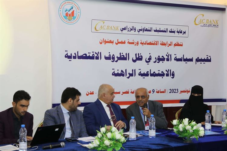 بدوره ألقى الأستاذ حاشد الهمداني كلمة قدم فيها الشكر للرابطة الاقتصادية على إقامة هذه الورشة، متطرقا إلى وضع الموظفين الراهن والذي فيه راتب الموظف لا يتجاوز الخمسين دولار بالكاد تكفي لكيس قمح عبوة خمسين كيلو، متمنياً أن تخرج الورشة بتوصيات هامة تقدم لصناع القرار السياسي في الدولة حتى يقوموا بإصلاحات في الأجور.