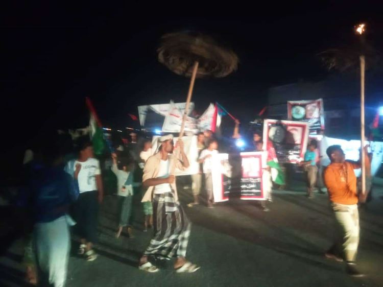 اقام مجلس الحراك الثوري الجنوبي بمديريتي الريدة وقصيعر محافظة حضرموت فعالية جماهيرية ومهرجان خطابي وفني بساحة الكورنيش يوم امس تضامنا مع القضية الفلسطينية العادلة وتنديداً بمجازر الاحتلال الاسرائيلي للشعب الفلسطيني..