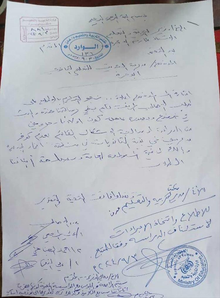 وأشاروا الأهالى إلى أن أنهم طالبوا مكتب التربية بعدن وايضا السلطه المحلية في البريقة بفتح المدرسة حيث سيساهمون في دفع حوافز للمعلمين أسوةً ببعض المدراس إلا أنهم لم يلاقوا أية إستجابة.