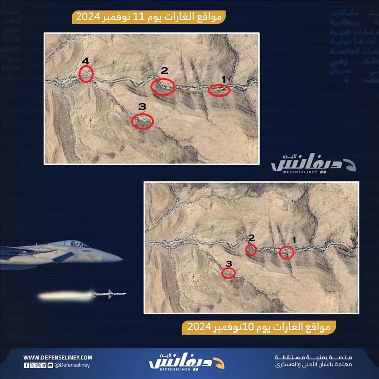 كشف تحقيق عسكري حديث لموقع "ديفانس لاين" المتخصص بالشأن العسكري والأمني عن استهداف المقاتلات الأمريكية - البريطانية، لواحدة من أهم القواعد الحوثية لتجميع وإطلاق الصواريخ الباليستية والمجنحة والطائرات المُسيرة.