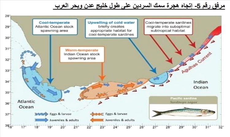 يشير الخبير في الأسماك والأحياء البحرية د. مهند باخبيرة، أن سمك العيدة أو السردين الصغيرة جداً، من الأسماك المهاجرة، ولها موسم معين، تظهر فيه بسواحل المهرة، يتم اصطيادها بكميات ضخمة دون أن تؤثر على الشعب المرجانية والبيئة البحرية، قد تواصل هجرتها الى دول أخرى، في حال لم يتم الاستفادة منها، ويقول "أن مصانع انتاج مسحوق الأسماك موجود في كل العالم، وما هو موجود في اليمن جزء صغير جداً، ينتج كميات لا تذكر أمام الانتاج العالمي" وتعتبر المهرة من أهم مراكز التسويق لدى الصيادين في المهرة وساحل البحر العربي، كون الموسم يأتي ويستفيدون من الكميات المهولة عبر بيعها لمصانع انتاج مسحوق الأسماك.