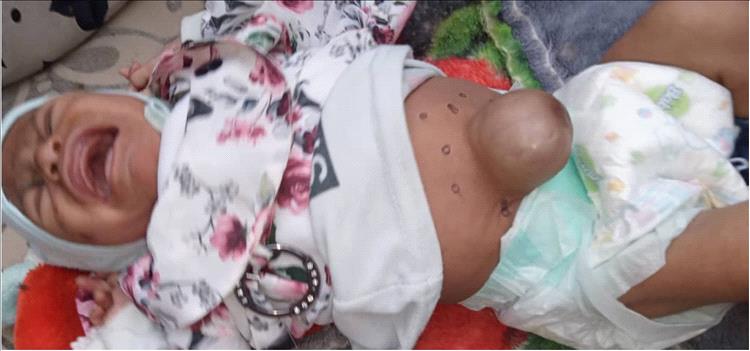 تعاني الطفلة "هيام سعيد عوض علي" _ البالغة من العمر (6) أشهر من سكان حي الوديعة بمدينة حصن عطية في مديرية خنفر بمحافظة أبين _ من ورم ظهر في بطنها ..