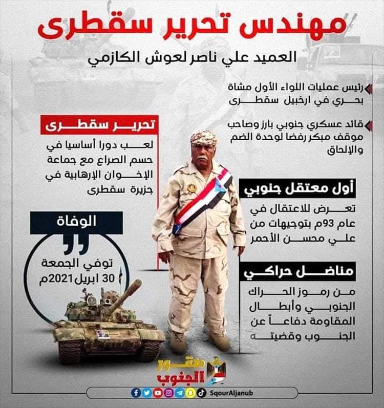 العميد علي العوش، طيب الله مرقده، القائد الذي لم يتكرر إخلاصه لوطنه الجنوبي، والذي عانى طوال حياته القهر والظلم من عصابات صنعاء. أولها عندما زج به العجوز (بلسن) في غياهب سجون الفرقة الحديدية الأولى في صنعاء، ليأتي الدور بعدها على القيادات الجنوبية تباعًا، إذ أخرجت فسرًا بناءً على معارضتها.