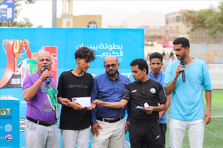 # مستشار محافظ تعز المحامي نجيب قحطان قدم خمسون الف ريال لصاحب اول هدف في البطولة مهاجم الصقر عبود رمزي .