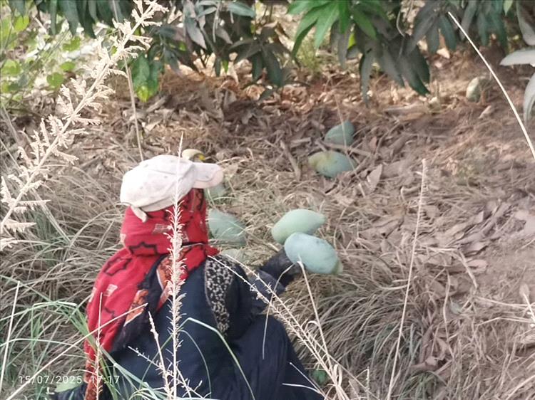 وأفاد أحد عمال المزرعة، الأخ سالم الحكمي: "نعمل في هذه المزرعة براتب شهري، وبخصوص شجرة المانجو، فهي ممتازة جدًا، ومن المحاصيل المنتجة ذات الجودة العالية والربح السريع. لكنها تستهلك كميات كبيرة من المياه، مثل محصول الموز. وقد حاول كثير من المزارعين في محافظة أبين التغلب على تكلفة مادة الديزل بشراء منظومات الطاقة الشمسية عن طريق الأقساط الشهرية، لتوفير تكاليف مادة الديزل الباهظة التي تصل إلى مئات الآلاف من الريالات. ويستطيع المزارع تعويض الخسارة في عدة مواسم. ويحتاج المحصول إلى كميات كبيرة من السماد، إضافة إلى تصفية (الصداع) بشكل مستمر عن طريق تسريح عدد من العمال كل ثلاثة أيام بشكل متواصل حتى لا تؤثر على عملية الإنتاج. ويتم الجني أسبوعيًا بكل سهولة. وأي عمل زراعي يصاحبه صعوبات، ولكن يمكن التغلب عليها وتجاوزها".