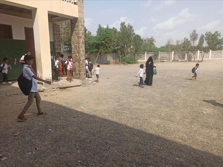 في زيارة ميدانية قامت بها عدسة التقرير إلى المدرسة، رُصدت مشاهد صادمة؛ طلاب يفترشون أرض الساحة، محتمين بشجرة صغيرة هربًا من لهيب الشمس، في ظل غياب مظلات أو أماكن مخصصة للاستراحة.