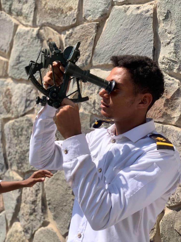 وخلال التدريب بين الكابتن اديب فضل مبجر للطلاب كيفية استخدام آلة السدس البحرية لقياس الزاوية بين الأفق وجسم سماوي لتحديد موقع السفينة وذلك لأهمية آلة السدس البحرية التي تعتبر أداة أساسية في الملاحة البحرية، حيث تمكن الملاحين من تحديد مواقعهم بدقة باستخدام الأجرام السماوية