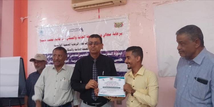 مدير عام مكتب الصحة بلحج يختتم الدورة التدريبية لمقدمي خدمات التحصين ونظام البيانات الإلكتروني