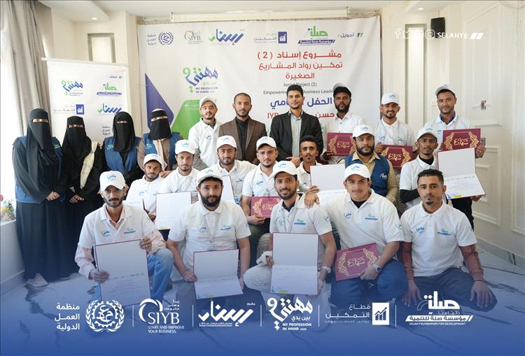 اختتمت المؤسسات الشريكة المنفذة للمشروع (مؤسسة صلَة للتنمية – فرع عدن، مؤسسة الرسالة للتنمية، جمعية إقرأ التنموية) مشروع إسناد 2، الذي جاء بهدف دعم وتمكين رواد المشاريع الصغيرة وتزويدهم بالمهارات العملية اللازمة للانطلاق في سوق العمل بثقة وكفاءة.