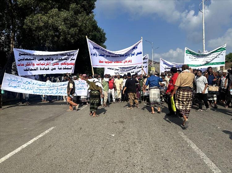 المئات من من أسر الشهداء والجرحى يعتصمون في عدن للمطالبة بحقوقهم المُهملة منذ سنوات