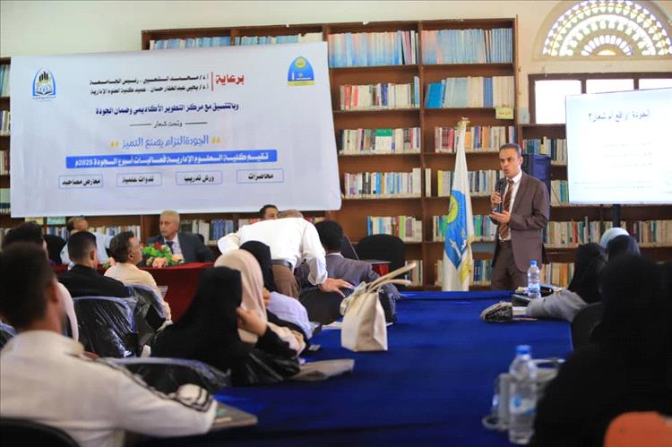 ضمن فعاليات أسبوع الجودة 2025، وتحت شعار: "الجودة… التزام يصنع التميز"، وبرعاية الأستاذ الدكتور محمد الشعيبي، رئيس الجامعة، نظّمت كلية العلوم الإدارية بجامعة تعز، بالتنسيق مع مركز التطوير الأكاديمي وضمان الجودة، فعالية علمية بعنوان "استراتيجية التعلم الحديث ودورها في تحقيق الجودة التعليمية"، قدمها الدكتور محمد الشدادي عضو هيئة التدريس بالكلية، بمشاركة أعضاء هيئة التدريس والطلاب.
