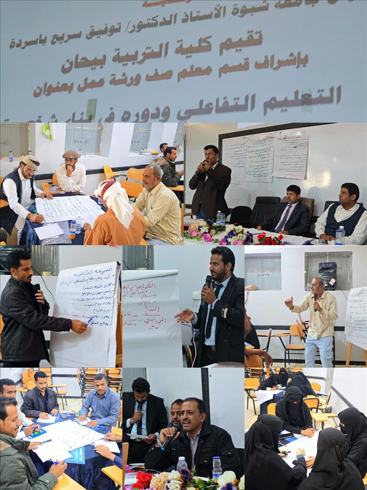 كلية التربية بيحان تنظم ورشة علمية بعنوان :  التعليم التفاعلي ودوره في بناء شخصية التلميذ في الصفوف الأولى ( 1 - 3 )