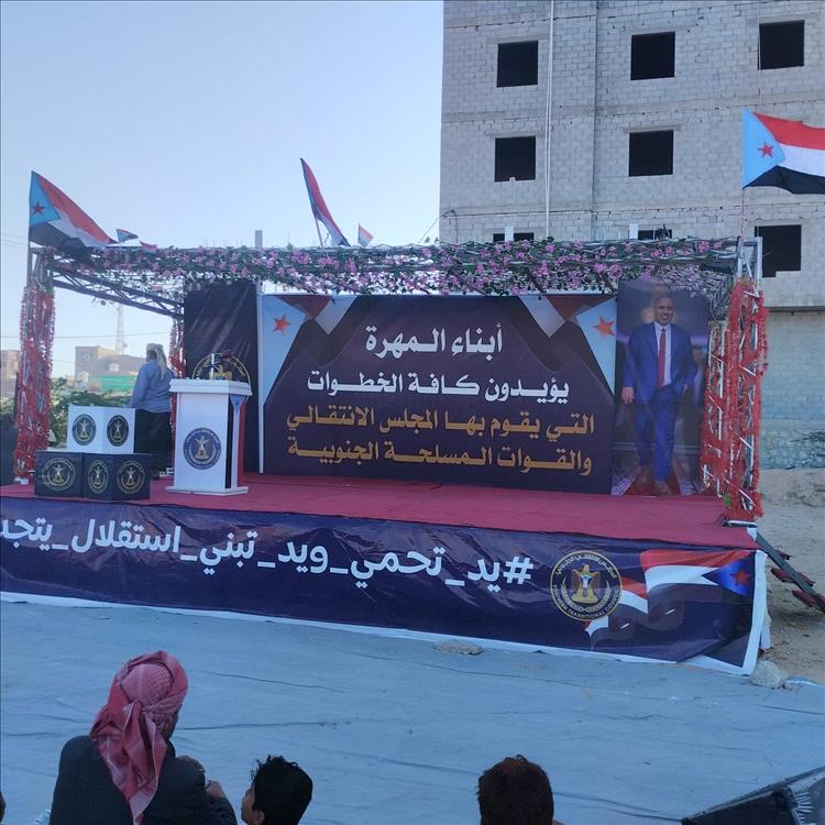 وفي خطاب ترحيبي، شكر الشيخ راجح باكريت الجماهير على تفاعلها الوطني ومساندتها للخطوات التي تتخذها القيادة السياسية للجنوب العربي، مؤكداً أن "ساعة الصفر قد اقتربت لإعلان دولة الجنوب العربي، تتويجاً لنضال ثلاثين عاماً". وأوضح أن الدولة الجنوبية المستقبلية ستكون "ضامناً حقيقياً للأمن الإقليمي والعربي ومحاربة الإرهاب"، مشيراً إلى أنها ستُبنى كدولة فيدرالية تراعي خصوصيات جميع أبنائها، بما في ذلك أبناء محافظة المهرة، في وطن متساوٍ في الحقوق والواجبات