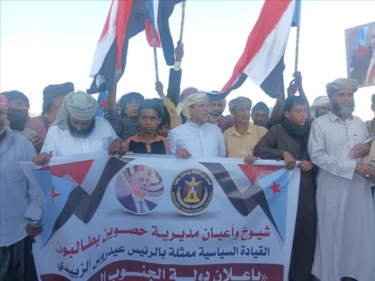 حشود حصوين وفرتك في الغيضة تؤيد قيادة المجلس الانتقالي وتطالب بإعلان دولة الجنوب الفيدرالية