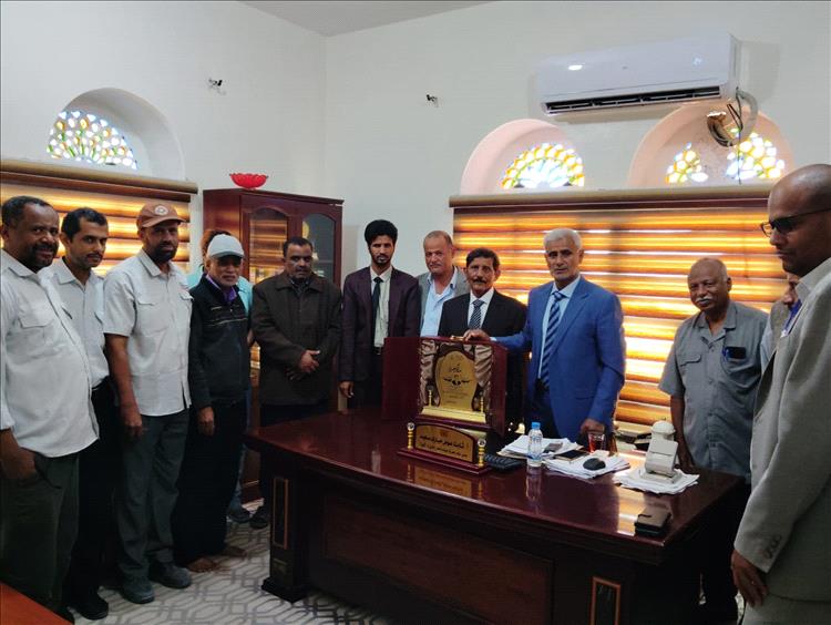 ومدراء الإدارات: عوض الحيقي، نبيل علوان، مختار عبدالله، نبيل الشيباني، عبدالله فتح، فاكر القباطي،