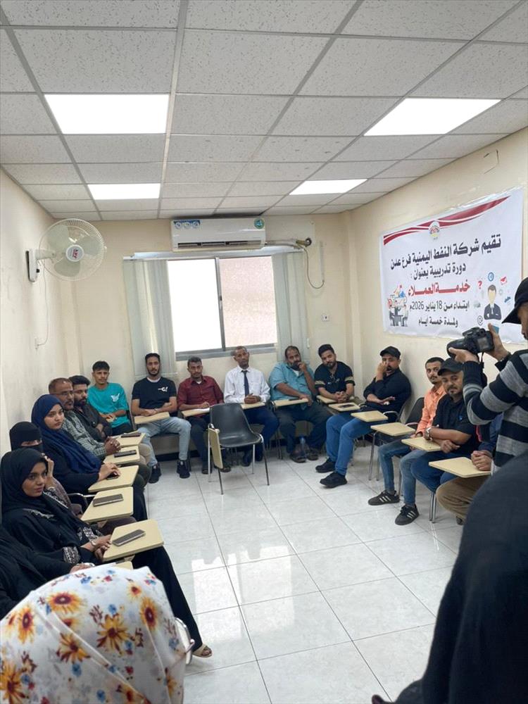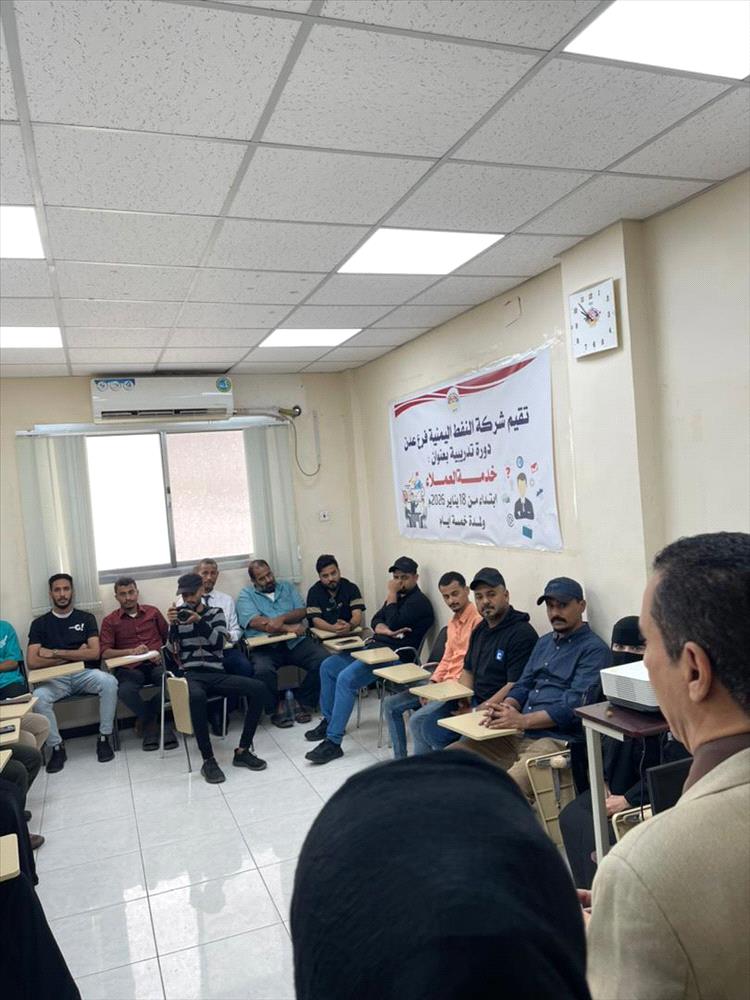 أقامت شركة النفط اليمنية فرع عدن، اليوم، دورة تدريبية بعنوان خدمة العملاء ، وذلك ضمن خطة إدارة الموارد البشرية للعام 2026 المبنية على احتياجات مختلف إدارات الشركة، وبمشاركة 23 متدربًا من الإدارات ذات الاختصاص بخدمة العملاء.