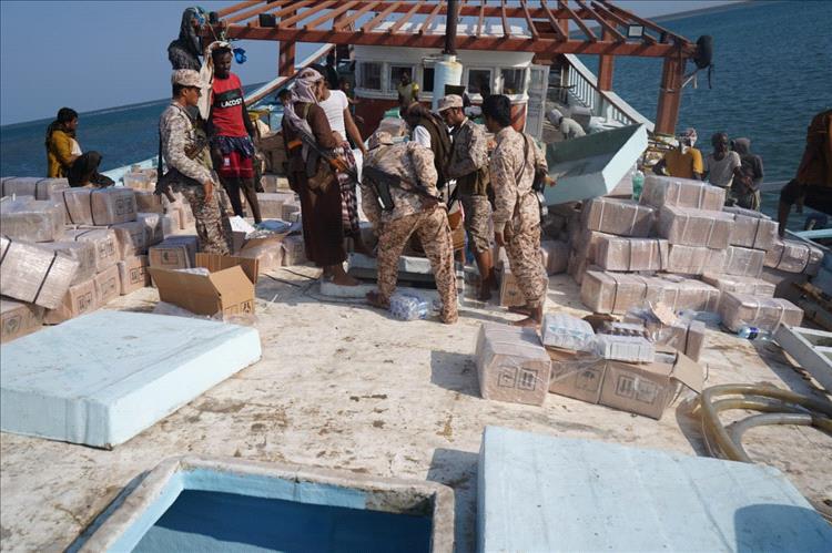في تفاصيلالعملية النوعية الجديدة قال المقدم مختار الدقم نائب قائد الحملة الأمنية والعسكرية في الصبيحة وباب المندب مدير الإدارة العامة لمكافحة المخدرات بمحافظة لحج، "أن الوحدة البحرية التابعة للحملة الأمنية والعسكرية في الصبيحة وباب المندب غرب محافظة لحج بقيادة العميد حمدي شكري، تمكنت فجر أمس الإثنين من إحباط عملية تهريب شحنه ضخمة من الأدوية المهربة، وذلك بضبط صنبوق يتجاوز طولة أكثر من 20 متر، وعلى متنه خمسة أفراد جميعهم من محافظة الحديدة، قادماً من ميناء بندر عباس الإيراني ومتجهاً لميناء الصليف بمحافظة الحديدة على البحر الأحمر.