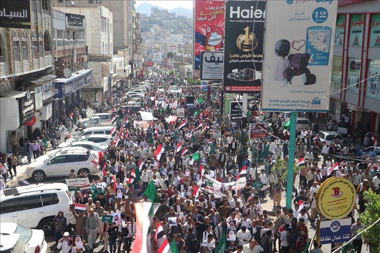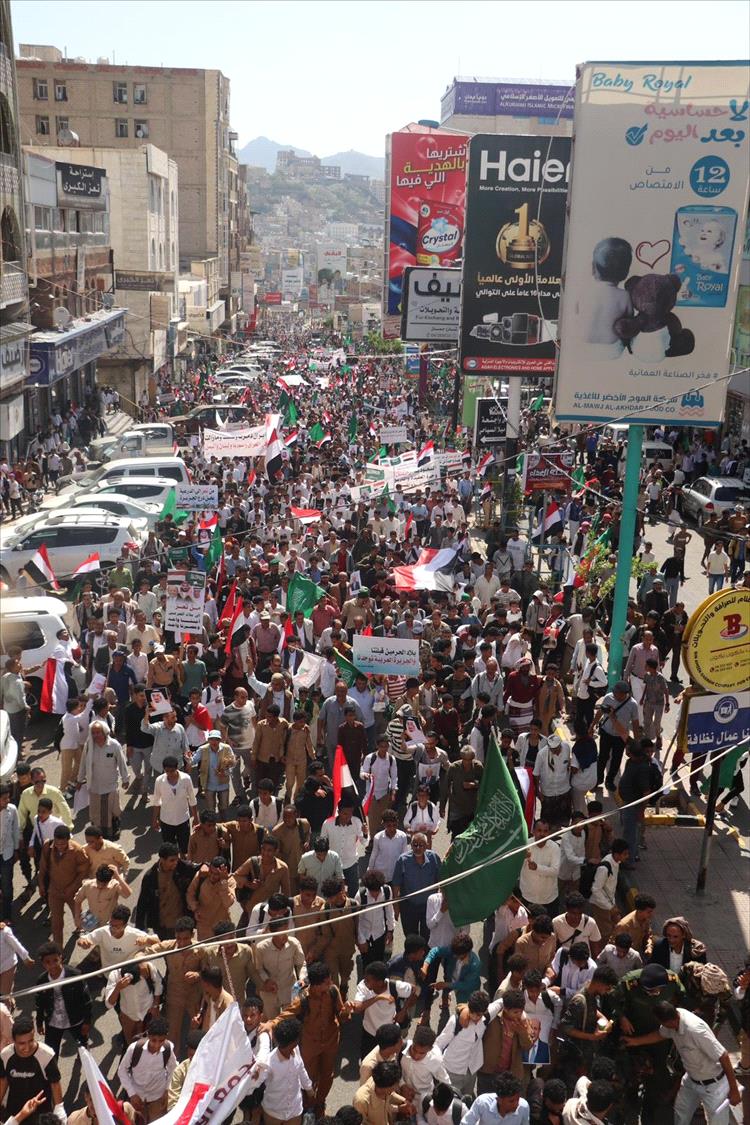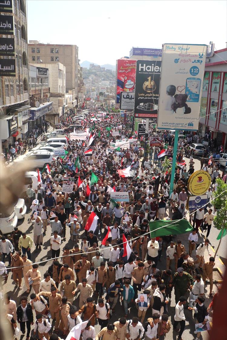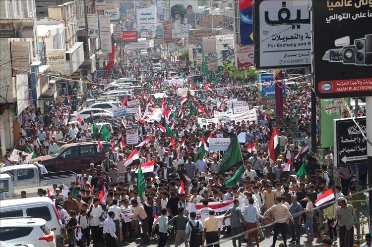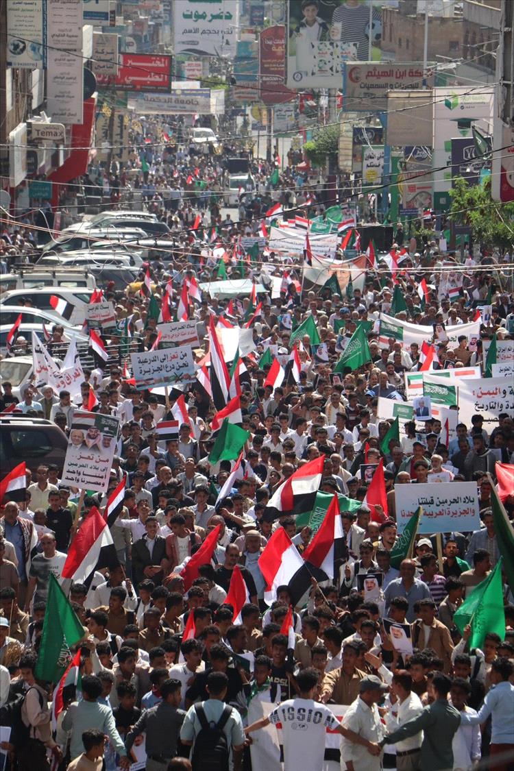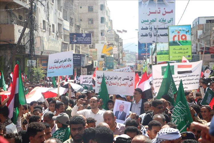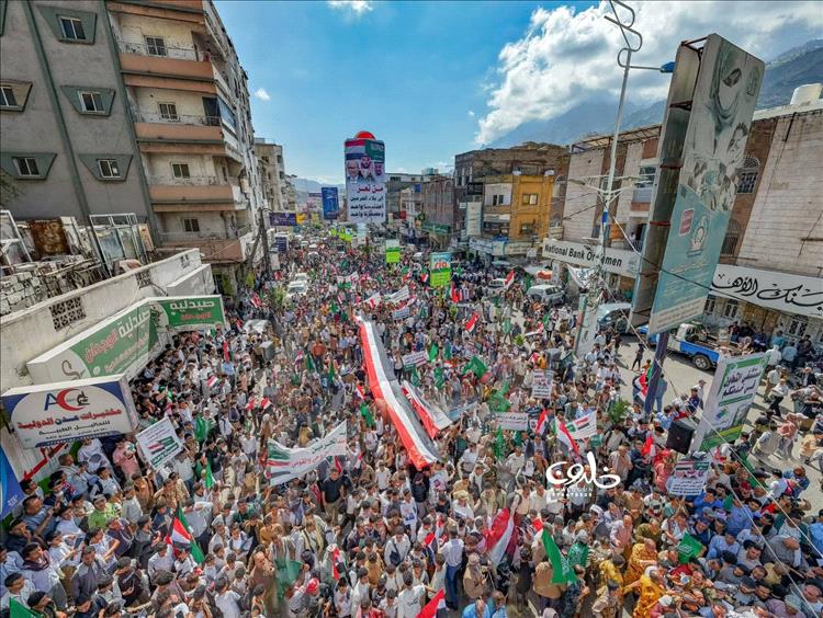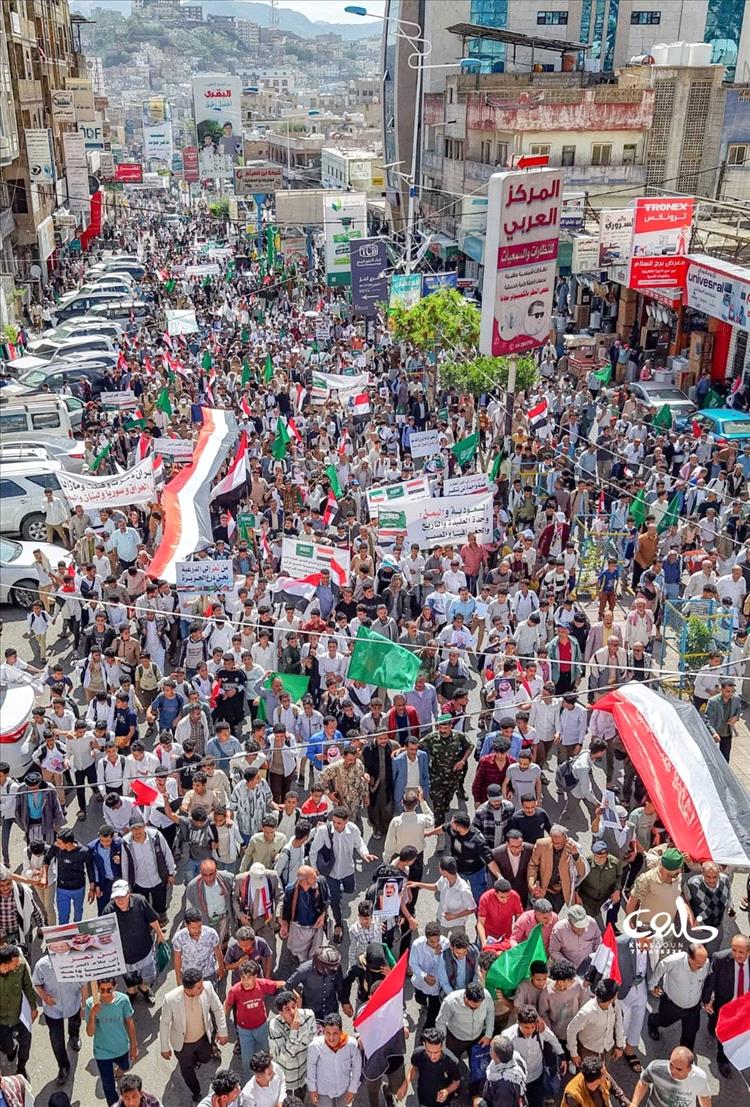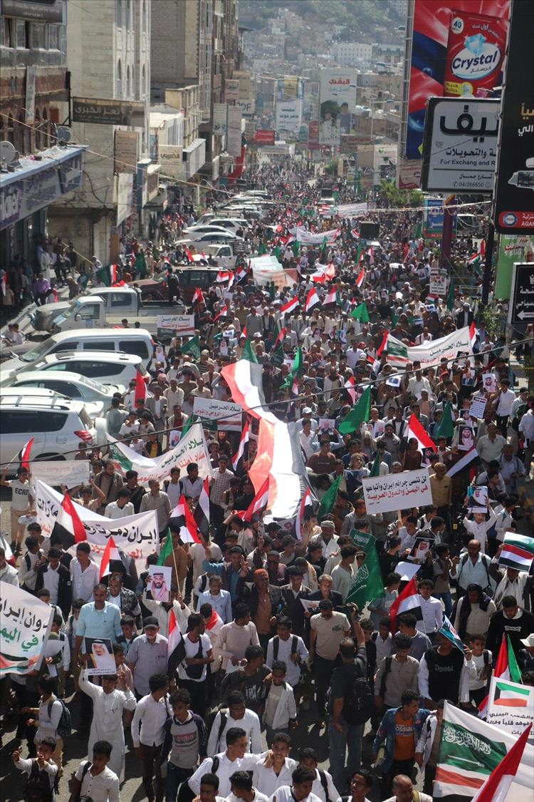 شهدت مدينة تعز، صباح اليوم، تظاهرة جماهيرية مليونية هي الأكبر منذ سنوات، عبّر خلالها عشرات الآلاف من المواطنين عن رفضهم لما وصفوه بالاستهداف الإيراني للمملكة العربية السعودية، مؤكدين تضامنهم الكامل مع الأشقاء في السعودية والدول العربية.
