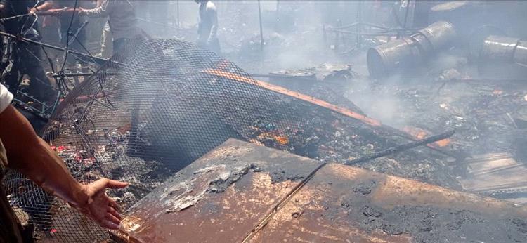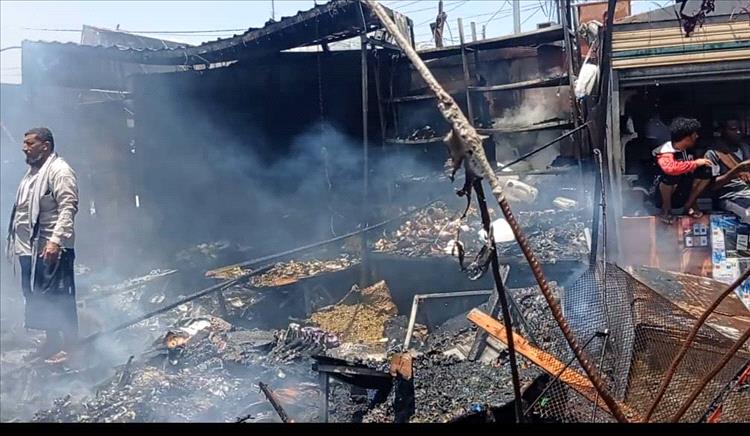 لحج.. حريق في سوق الفيوش بسبب الألعاب النارية يخلّف خسائر مادية