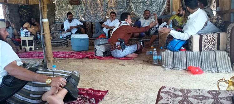 اعلاميون ونشطاء سياسيون وقيادات عسكرية ومدنيه وشخصيات قبلية تعقد جلسة نقاش مع الشيخ عبدالرحمن شاهر الصبيحي