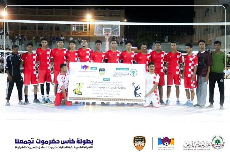 اختُتمت مساء السبت 4 أبريل 2026م على ملعب كرة الطائرة بمنشأة نادي سمعون بمدينة الشحر منافسات بطولة كأس حضرموت تجمعنا للكرة الطائرة للفرق الشعبية بالمديريات الشرقية، وسط أجواء رياضية حماسية وتنظيم مميز.