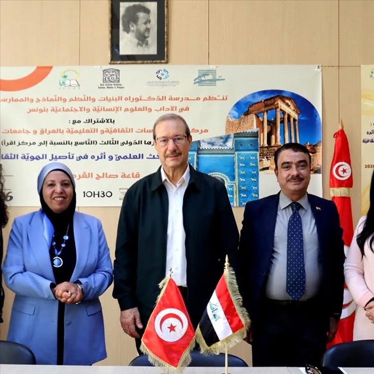 في رحاب تونس، حيث يتعانق عبق التاريخ بألق الفكر، احتضنت جامعتها العريقة يوم الاثنين 13 أفريل 2026 أشغال المؤتمر التونسي العراقي المشترك، الذي انتظم تحت عنوان: "البحث العلمي وأثره في تأصيل الهوية الثقافية". وقد شهدت فعالياته حضورًا أكاديميًا ودبلوماسيًا وازنًا، عكس عمق الروابط العلمية والإنسانية التي تجمع بين تونس والعراق، في مشهد يختزل ذاكرة مشتركة وطموحًا متجددًا نحو المستقبل.