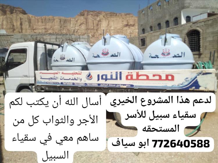 وفي جانبٍ آخر من جوانب العطاء، يبرز "أبو سياف" كمهندسٍ لمشاريع "سقيا الماء"؛ حيث يسعى جاهداً لتوفير مياه التحلية (سقيا سبيل) للأسر المستحقة والمتعففة في حي العبور والأحياء المجاورة بمدينة عتق. هذا المشروع الذي يلامس حاجة يومية ملحة، يرافقه جهدٌ إغاثي مستمر يتمثل في توفير السلال الغذائية والمساعدات العينية للأسر التي تعصف بها الظروف المعيشية الصعبة، باحثاً عن المحتاجين في زوايا الأحياء ليقدم لهم العون بكل مودة وستر.