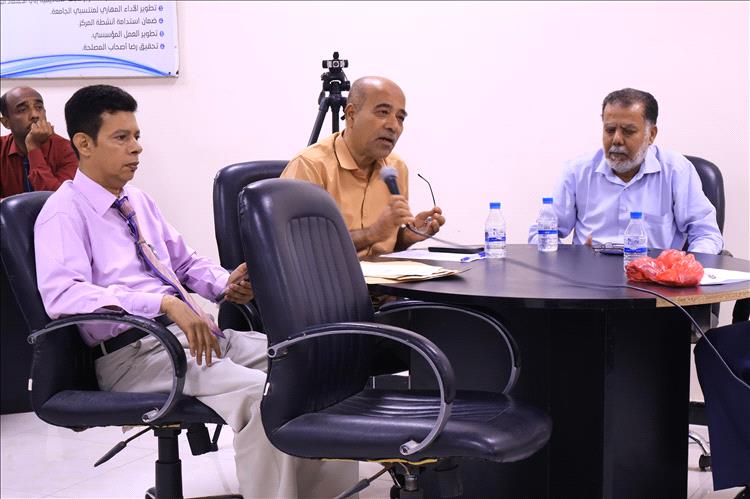 اثرى عمداء الكليات ونوابهم ومدراء المراكز، العلمية بالجامعة،والامانة العامة بالجامعة والحضور في ختام كل جلسة أعمال الورشة بالنقاشات العلمية الهادفة التي من شأنها تفعيل الاتفاقيات غير المفعلة.