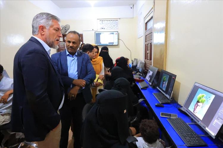 قام وفد من الاتحاد الأوروبي برئاسة السفير باتريك سيمونيه، بزيارة ميدانية لمقر معهد "احتراف" للتدريب والتأهيل بمدينة تعز؛ للاطلاع على سير العمل في هذا الصرح التنموي، والتعرف على دور المعهد في صناعة فرص العيش المستدامة للمتضررين من الحرب.