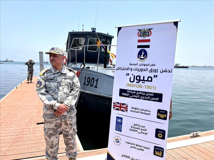 وجرت مراسم التدشين بحضور عدد من قيادات مصلحة خفر السواحل، حيث يمثل الزورق إضافة متقدمة لمنظومة العمل البحري، ويأتي ثمرة تعاون مشترك مع الشركاء الدوليين الداعمين، وفي مقدمتهم حكومة المملكة المتحدة وبرنامج الأمم المتحدة الإنمائي.