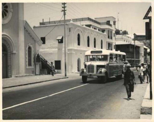 صورة نادرة لحافلة طُلاب بجانب مدرسة سانت أنتوني في التواهي في الخمسينات